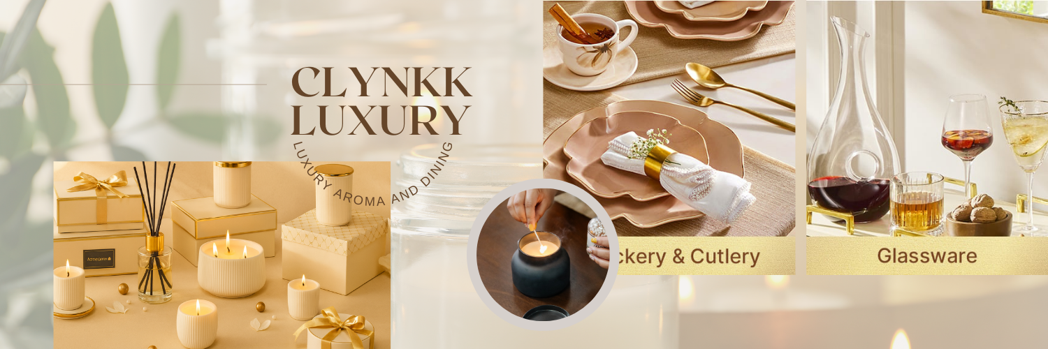 Welcome to Clynkk, your destination for crockery, scented candles and diffusers. We believe that the little details make the biggest difference — whether it's an elegant dining setup, a calming fragrance to soothe your evenings, or a diffuser that refreshes your space. Every product at Clynkk is carefully curated to bring quality, style and comfort into your home.